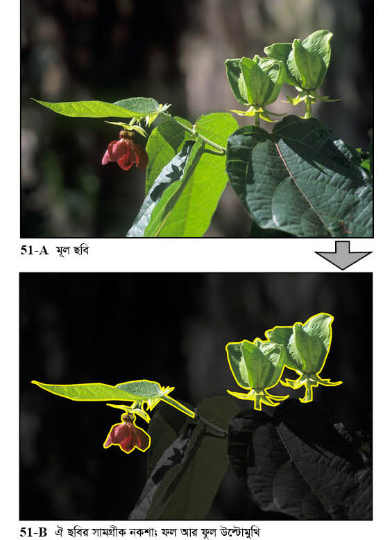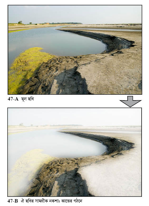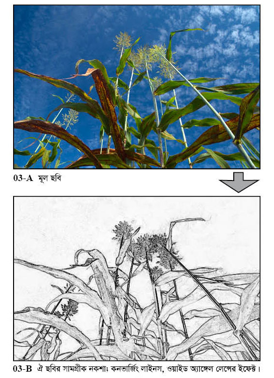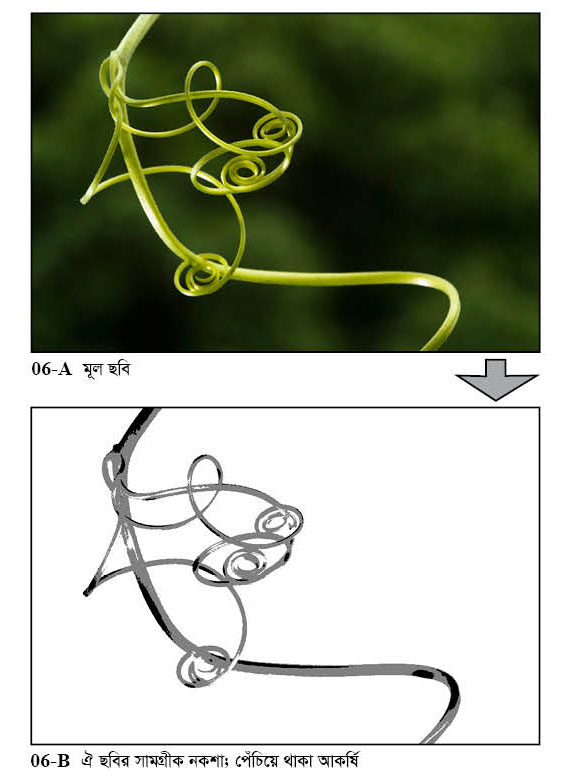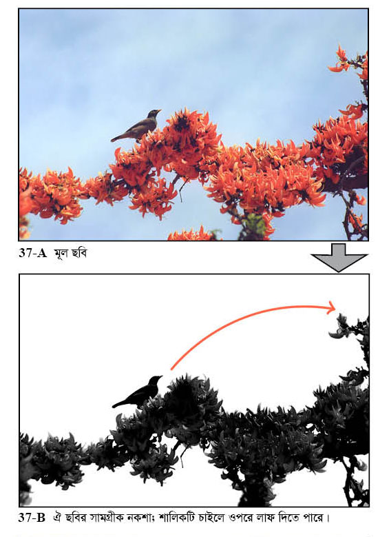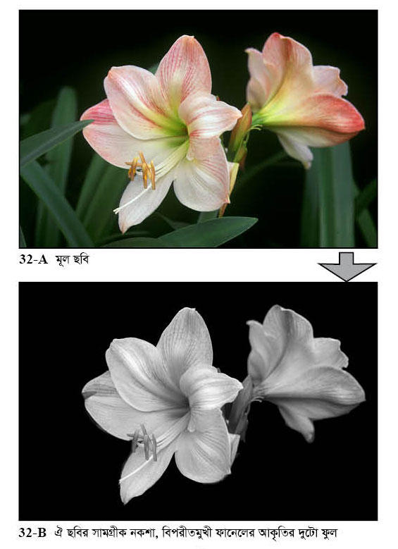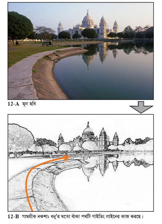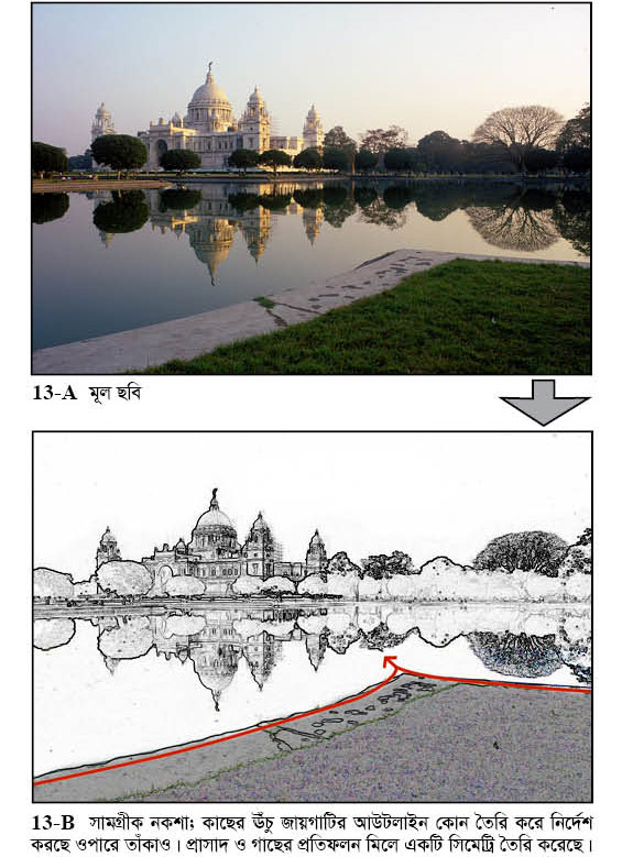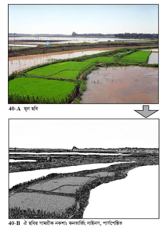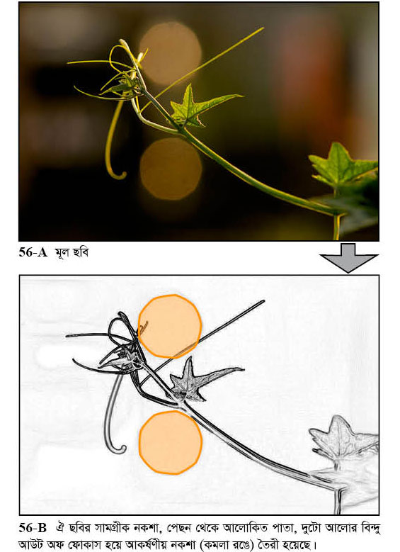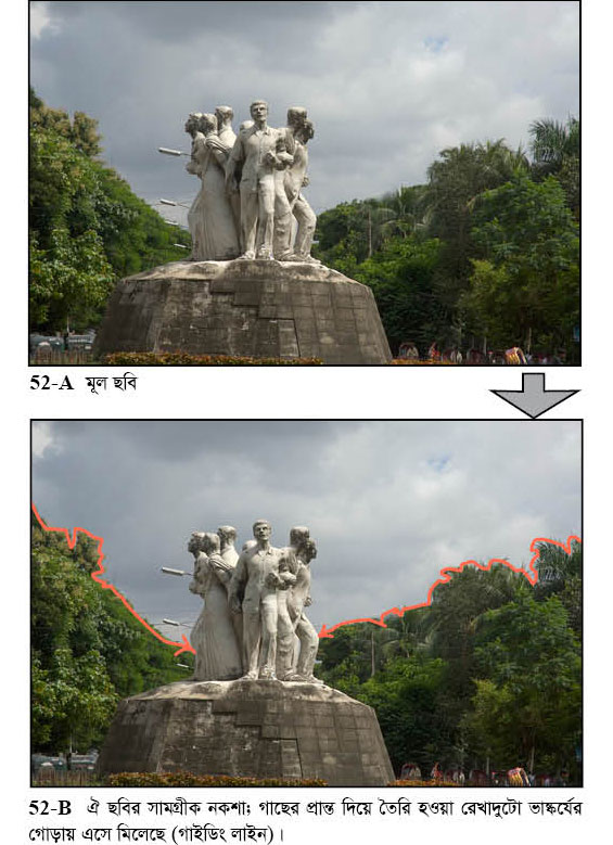 পৃষ্ঠা ০৪ থেকে নমুনা ছবিগুলোর মাধ্যমে এরই বর্ণনা দিতে যাচ্ছি । এখানে বামের ছবি (A) হল মূল ছবি। পরের একটি/দুটি (B/C) ছবি বা নকশা দিয়ে ছবির সামগ্রিক নকশা বোঝানোর চেষ্টা করেছি।