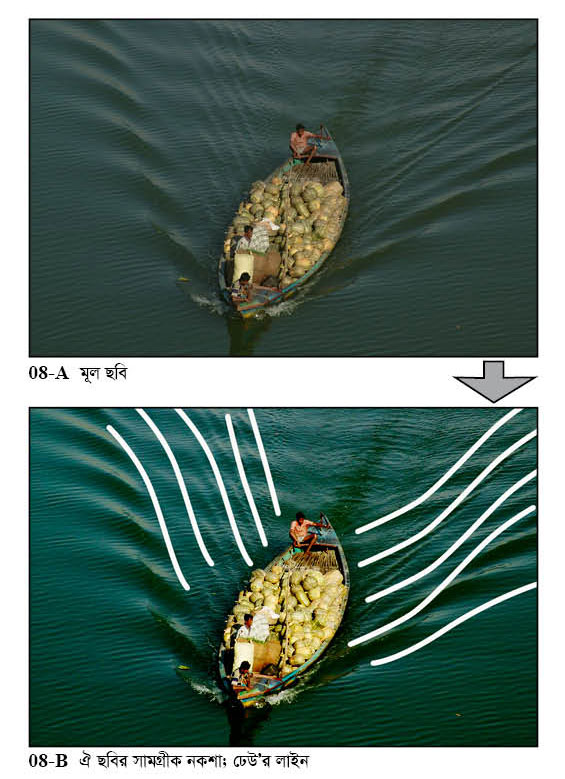 বিষয়বস্তুতে বিদ্যমান রেখা / রেখাসমূহ কিংবা বিষয়বস্তু দ্বারা তৈরি হওয়া রেখা / রেখাসমূহ ছবিতে ডিটেইল তৈরি করে, দর্শকের চোখকে আকর্ষণ করে এবং ধরে রাখে।