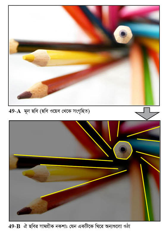 নমুনাগুলো অনুধাবন করে একজন শিক্ষার্থী ফটোগ্রাফার ছবি তোলার আগ মুহূর্তে তার ছবির ফ্রেমের মধ্যে এভাবে একটি নকশা/ডিজাইন খুঁজে নেয়ার অভ্যাস গড়ে তুলবেন। গ্রাফিক ডিজাইনার এবং যারা ছবি আঁকেন, তাদের জন্যও এই নমুনাগুলো উপকার দেবে বলে আমি আশা করি।